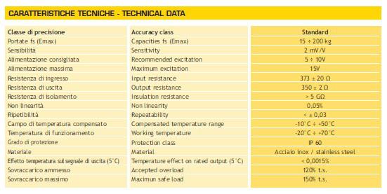 意大利N.B.C Mod EC稱重傳感器技術(shù)參數(shù):